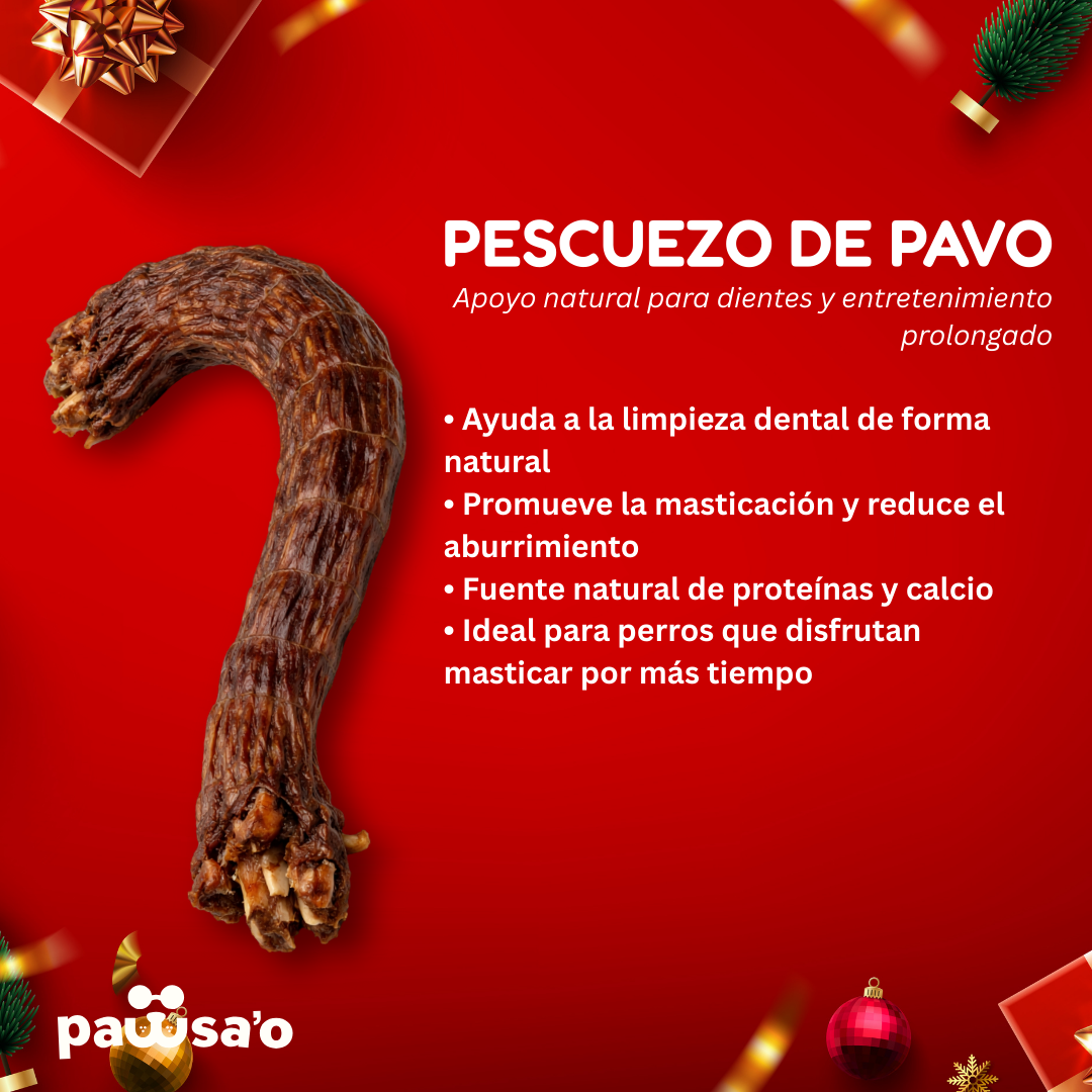 Pescuezo de pavo — ideal para promover la masticación natural y el entretenimiento prolongado, mientras apoya la salud dental.