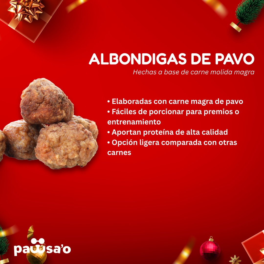Albóndigas de pavo (carne molida magra) — bocados prácticos y sabrosos, ricos en proteína de alta calidad y fáciles de porcionar.